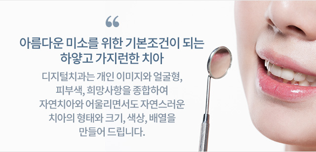 매일 하는 칫솔질과 스케일링만으로는 되돌릴 수 없는 치아변색 미백치료를 통해 더 하얗고 밝은 치아를 가질 수 있습니다.